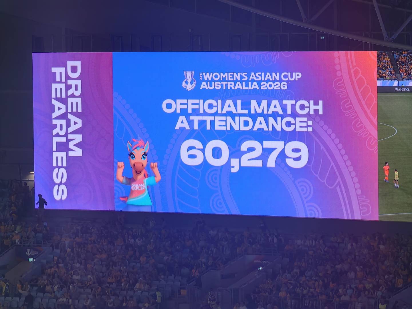 现场观赛人数也超过了2015年亚洲杯小组赛澳大利亚队与阿曼队的50276人,成为澳大利亚有史以来观赛人数最多的亚洲杯小组赛,包括男女比赛。